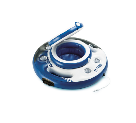 Mega Chill Floating Inflatable Cooler Intex 56822. Не нужно выходить из бассейна, чтобы выпить чего - нибудь освежающего, если у вас есть холодильник Intex Mega Chill! Надувной бар оснащен тремя воздушными камерами для дополнительной безопасности, пятью встроенными подстаканниками и двумя подносами, прочными ручками и встроенным холодильником для освежающих напитков и льда. Это удобный аксессуар для отдыха у бассейна. Охлаждающий бар для напитков порадует вас и ваших гостей своим стильным дизайном и функциональным оснащением. В комплект входят простые в использовании соединители для крепления к другим изделиям River Run. Характеристики: Надувной плавающий бар с крышкой - холодильник для бассейна. Диаметр: 89 см. Форма: круглый 3 воздушные камеры 5 встроенных подстаканников Вместимость 16 - 24 баночки с напитками, без учета льда. Отделения для фиксации предметов: 2 Прочные ручки Заплатка для ремонта. Материал: ПВХ Без насоса.