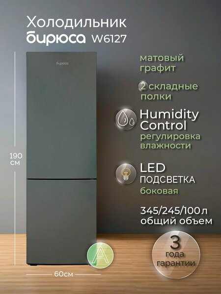 Представляем вашему вниманию двухкамерный холодильник Бирюса W6127, который станет надежным помощником в вашей кухне. С общей емкостью 345 литров и высотой 1,9 метра, этот удобный и функциональный прибор идеально впишется в любой интерьер. Холодильник оснащен двумя складными полками, что позволяет легко расположить продукты различного размера, а также удобно организовать пространство внутри. Благодаря системе автооттаивания вы забудете о необходимости вручную размораживать прибор, что значительно упрощает уход за ним. Модель выделяется регулировкой влажности, что позволяет сохранять свежесть овощей и фруктов на длительное время. Этот функционал особенно актуален для тех, кто ценит здоровье и стремится к правильному питанию. Корпус в цвете матовый графит не только выглядит стильно, но и гарантирует долговечность и надежность в эксплуатации. Холодильник с морозильной камерой внизу обеспечит вам максимальное удобство при хранении замороженных продуктов. Вы можете не волноваться о недостаточном пространстве, так как двухдверный холодильник предоставляет достаточно места для всего необходимого. Эта модель станет отличным выбором для дома или офиса. Простота в использовании и стильный дизайн делают его универсальным решением для вашего пространства. С Холодильником Бирюса W6127 вы сможете легко поддерживать порядок и свежесть продуктов, экономя при этом время на уход.