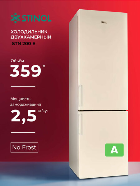 Холодильник STINOL STN 200 E с системой Total No Frost — это стильный и вместительный двухкамерный прибор, идеально подходящий для современных кухонь. Он оснащен перевешиваемыми дверями и регулируемыми ножками для удобства установки. С общей емкостью полезного объема 324 литров и продуманным разделением на холодильную и морозильную камеры, этот холодильник обеспечит комфортное хранение продуктов. Его элегантный бежевый цвет и металлические двери гармонично впишутся в интерьер любого помещения, а система автоматического размораживания с технологией Total No Frost избавит вас от необходимости вручную размораживать камеры.