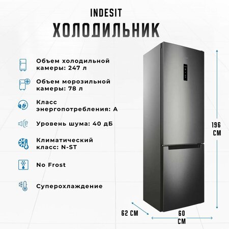 Двухкамерный холодильник Indesit ITS 5200 NG, Total No Frost, темно-серый