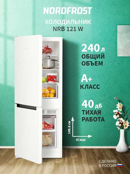 Холодильник NORDFROST NRB 121 W двухкамерный, 240 л объем, 150 см высота, белый