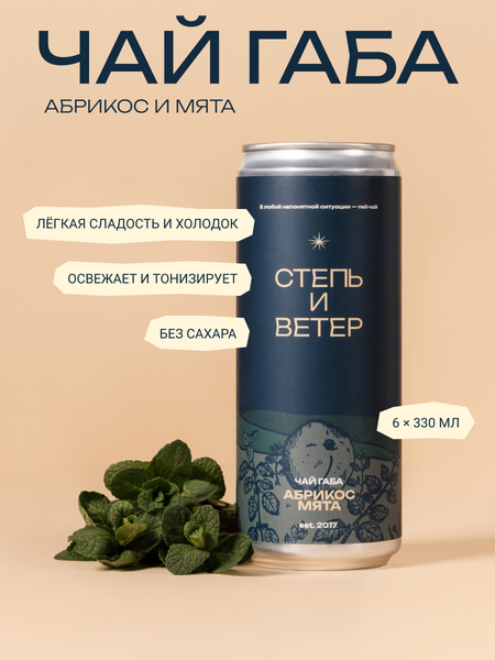 Пастеризованный холодный чай габа с абрикосом и мятой. Бодрит, освежает и помогает собраться с мыслями. Среднегазированный, без сахара. Продаётся в упаковке из 6 банок по 330 мл. Используем только натуральные ингредиенты, которые сами выращиваем и собираем. Минеральную воду берём из собственной скважины — так напиток получается чище и вкуснее. Напиток подойдёт людям, следящим за питанием: в 100 г продукта — 4,9 г углеводов и 19,6 ккал. Холодный чай габа с абрикосом и мятой от «Степь и Ветер» — заряд свежести и природной энергии.