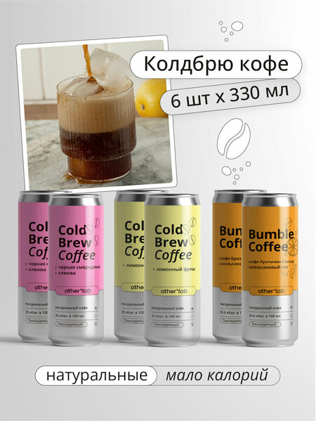 Микс из 3 натуральных газированных напитков на основе натурального кофе от Other Lab с приятными бонусами для самочувствия. Отличный вариант, чтобы попробовать всю линейку и разнообразить свой рацион яркими вкусами. -Холодный кофе COLD BREW COFFEE с лимоном -Холодный кофе COLD BREW COFFEE с черной смородиной и клюквой -Холодный кофе BUMBLE COFFEE с апельсином Возможен осадок в виде частиц молотого кофе, так как напиток изготовлен из натурального зернового кофе, который не растворяется. Other Lab – лаборатория супер-дринков в Петербурге с собственным производством. Мы разрабатываем функциональные напитки из кофе, фруктов и ягод с полезными добавками. Снижаем количество сахара и калорийность натуральными сахарозаменителями. Собственное производство позволяет тщательно следить за качеством продукта: от выбора лучшего сырья до контроля розлива и упаковки.