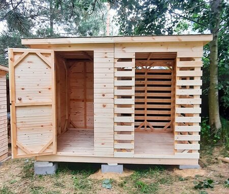 Хозблок с дровником 3х2м. Строительная компания дача 78 завоевала доверие множества владельцев дачных участков. Мы производим дачные постройки по каркасной технологии. Данная технология широко распространена и имеет ряд приемуществ. Постройки получаются крепкие, легкие, не склонны к деформации. Мы гарантируем своим клиентам качество, длительную эксплуатацию и добротность построек. Данный хозблок совмещен с дровником. Общий размер постройки составляет 3х2м. Помещение хозблока 1,5х2м и дровника 1,5х2м. Свяжитесь с нами, набрав в любом поисковике название компании "СК Дача 78". На нашем сайте можно посмотреть и другие наши работы, а так же обсудить комплектацию. Сборка осуществляется бесплатно нашими мастерами в день доставки. Вам не нужно ни о чем беспокоиться. Фундаментные блоки для хозблока в комплекте. Вам нужно только выбрать место для установки на вашем участке. Мы привозим хозблок отдельными секциями, проносим вручную до места установки и собираем в любом месте участка за несколько часов. Стоимость доставки отображается под стоимостью хозблока. Убедитесь, что в приложении стоит адрес дачи (участка), а не домашний адрес (квартира). Поменять адрес доставки можно на главной странице своего профиля в левом верхнем углу. Комплектация: Каркас-брусок 50х50мм. Обшивка внешняя -евровагонка, сухая рейка 20х96 мм. Дверь-каркасная, ширина 70 см. Пол- доска сухая строганная, лаги 40х100мм. шагом 60 см. Кровля-рулонная стеклоизол Фундаментные блоки- 6шт.