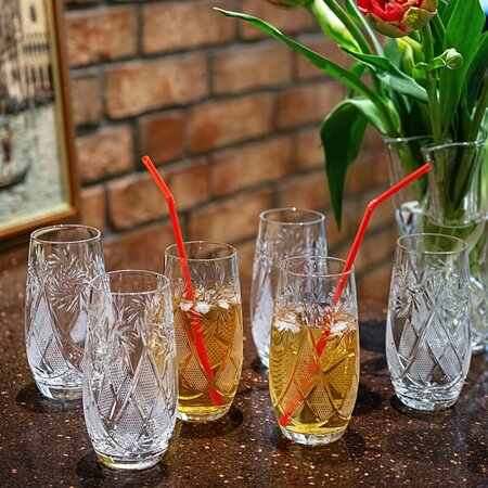 Набор из шести хрустальных стаканов от Неман Стеклозавод - это идеальное дополнение для вашего стола. Каждый стакан в этом наборе имеет объем 300 мл и предназначен для подачи воды, соков, коктейлей и других напитков. Выполненные из высококачественного хрусталя, эти стаканы отличаются утонченным дизайном и элегантностью. Хрусталь придает напиткам особую привлекательность и подчеркивает эстетику любого стола, делая каждое ваше застолье особенно уютным и роскошным. Прозрачный материал позволяет максимально раскрыть цвет и текстуру напитка, создавая впечатление чистоты и свежести. Благодаря прочности и долговечности хрусталя, вы можете быть уверены, что эти стаканы будут служить вам долгое время, сохраняя свой первоначальный блеск и великолепие. Стаканы из этого набора не только функциональны, но и станут прекрасным украшением вашего интерьера, добавив ему нотку роскоши и изысканности. Они прекрасно подойдут как для повседневного использования, так и для торжественных мероприятий, таких как семейные праздники, вечеринки или деловые встречи. Дарите себе и своим близким эстетическое наслаждение с хрустальными стаканами Стеклозавода Неман. Изящная форма изделий, особый хрустальный звон и игра света не оставит Вас равнодушным в любой праздник или торжество. Хрусталь не тускнеет и не желтеет со временем, не царапается.