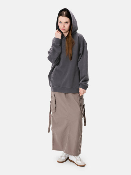 Худи в мягком цвете и с лёгким эффектом потёртости, который мы получили благодаря технологии Garment Dye. Это способ окраски уже сшитой вещи — он делает худи менее марким и придаёт ему фактурный вид. У худи большой капюшон, свободный силуэт, спущенная линия плеча, два кармана спереди, манжеты на рукавах и резинка снизу. Сшито из натурального хлопка. Худи можно сочетать с другими вещами или носить отдельно. В худи комфортно работать и учиться, гулять и проводить досуг, заниматься спортом и просто отдыхать. Универсальный вариант на каждый день. Размерная сетка единая для неё и для него.