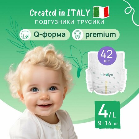 Добро пожаловать в мир удобства и заботы о вашем малыше с брендом "Kirulya"! Kirulya - это не просто дневные трусики для малышей. Это инновационные решения, созданные с любовью и заботой о вашем ребенке Итальянской лабораторией Micral S.R.L. (г. Мартеллаго). Наши премиальные подгузники-трусики Q-формы изготовлены с использованием передовых технологий и высококачественных материалов, чтобы обеспечить максимальный комфорт и безопасность вашего малыша. Что делают трусики-подгузники Кируля особенными? Продвинутая абсорбция: Наши подгузники оснащены высокомолекулярным абсорбентом, которые моментально впитывают влагу, предотвращая образование комочков и опрелостей, и обеспечивают до 12 часов сухости. Можно использовать как ночные. Мягкость и удобство: ультратонкие! Внутренний слой "Kirulya" создан для нежного контакта с кожей вашего малыша. Мы также предусмотрели эластичные пояса для быстрого надевания и боковые резиночки, которые плотно прилегают, предотвращая протекания и обеспечивая свободу движения детям. Забота о коже: Наши трусики детские изготовлены из гипоаллергенных материалов, которые не вызывают раздражений. Не содержит отдушек, без химического отбеливания. Удобный индикатор наполнения наших подгузников поможет вам точно определить, когда пришло время сменить подгузник. Товары для малыша представлены в размерах: 3 M , 4 L , 5 XL , 6 XXL . Подгузники для новорожденных. Мы гордимся тем, что каждый памперс прошел Строгий контроль на каждом этапе производства по качеству и безопасности. Мы понимаем, как важно доверие родителей к выбору продуктов для своих детей, и поэтому работаем над тем, чтобы ваш малыш чувствовал себя комфортно и счастливым. "Kirulya" - это не просто трусики, это забота, надежность и уверенность в каждом шаге, помощь в приучении к горшку вашего маленького чуда. Подарите своему ребенку только лучшее с "Kirulya" ! Разработано в Италии. Amore…