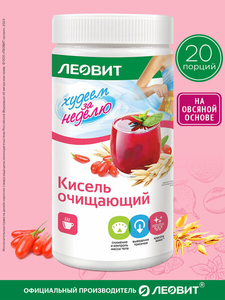 Диетический очищающий овсяный кисель для похудения от леовит поможет мягко и безопасно очистить организм и подготовить его к процессу снижения веса. Состав обогащён полезными компонентами, которые помогут провести эффективную детоксикацию и избавить тело от лишнего — среди них зеленый чай, кориандр, яблоко, сельдерей, лавровый лист, свекла и экстракт кукурузных рылец. Очищающий кисель быстрого приготовления способствует выведению из организма токсических веществ, ускоряет выведение продуктов обмена веществ, нормализует работу желудочно-кишечного тракта, уменьшает застой желчи и усиливает моторику кишечника. Очищающий кисель не требует варки. Залейте 2 столовые ложки (20 г) продукта стаканом горячей воды (150-180 мл). Перемешайте и дайте настояться 1-2 минуты. Полезный и вкусный напиток для очищения организма готов! Для лучше результата пейте его дважды в день натощак или замените им один из приемов пищи. Энергетическая ценность на 100гр - 340Ккал, Углеводы 89г на 100гр Это полезный продукт диетического питания ускоряет выведение из организма продуктов обмена веществ. Обладает детокс эффектом или "очищающим" действием: способствует выведению из организма токсических веществ и снижает интоксикацию. Способствует снижению массы тела. Нормализует работу желудочно-кишечного тракта (ЖКТ), в том числе усиливает моторику кишечника. Уменьшает застой желчи (холестаз). Положительно влияет на течение соматической патологии с признаками обменных нарушений. Обладает противозудным действием. Постный продукт Пищевая ценность (средние значения) в 100 г сухого продукта/% ССП*: углеводы – 89 г/24, магний – 200 мг/50, энергетическая ценность – 1530 кДж (360 ккал)/14 *ССП - средняя суточная потребность в соответствии с ТР ТС 022/2011