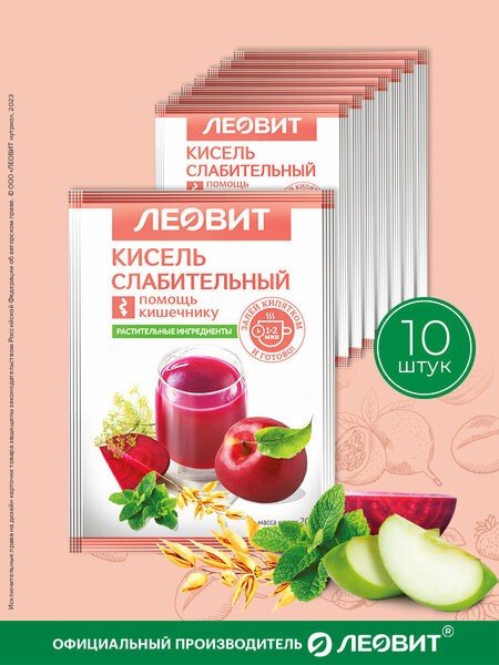 Слабительный кисель леовит – специализированный пищевой продукт диетического профилактического питания для улучшения моторно-эвакуаторной функции кишечника, снижения риска развития ожирения и метаболического синдрома. Сухой напиток быстрого приготовления в пакетиках по 20 г удобно взять с собой в дорогу или на работу. Низкая физическая активность, пониженное содержание волокон в пище, недостаточное употребление жидкости, психоэмоциональные стрессы – эти и другие факторы препятствуют бесперебойной работе кишечника и могут причинять существенный дискомфорт. Кисель «Слабительный» содержит яблоко, свеклу, овес, магния сульфат, экстракт перечной мяты, кору крушины, плоды укропа, за счет чего он способствует: мягкому слабительному действию; улучшению пищеварения и нормализации перистальтики кишечника; устранению метеоризма и уменьшению болевых ощущений и выведению токсинов из организма. Клинические исследования фитокомплекса, входящего в состав киселя «Слабительный», показали, что уже начиная со 2-3 дня приема отмечался положительный эффект в виде однократного стула в утренние или вечерние часы, ликвидировался метеоризм, уменьшались диспепсические явления, нормализовывалось пищеварение. Прием в течение 26–30 дней улучшал показатели кишечного микробиоценоза, мягкий послабляющий эффект не сопровождался желудочно-кишечным дискомфортом и болевым синдромом, не вызывал послабления диарейного характера. Переносимость была хорошая. Аллергических реакций, токсических изменений со стороны крови, мочи, функциональных проб печени, каких-либо местных кожных реакций не отмечалось. Рекомендован для регулярного длительного приема. Не содержит искусственных красителей и консервантов. Просто залейте порцию киселя кипящей водой и через 1-2 минуты готово! Постный продукт