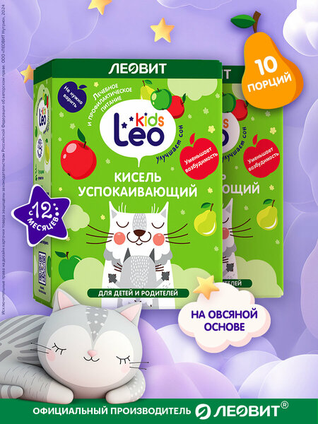 Леовит - произведено для детей! Натуральный детский быстрорастворимый кисель «Успокаивающий» содержит натуральные компоненты, которые помогут малышу успокоиться и подготовиться ко сну. Кисель быстрого приготовления предназначен для лечебного и профилактического питания детей с одного года при повышенной нервной возбудимости и раздражительности. Рецепт создан с учетом особенностей детского организма. Натуральные компоненты киселя Леовит для детей оказывают седативное действие, помогают при нервном возбуждении, снижают утомляемость. У малыша улучшатся настроение и сон. Кисель рекомендован педиатрами при гипереактивности малыша и состояниях нервного напряжения. Компоненты подобраны в безопасной для детей дозировке. В основе киселей для детей от года Leo Kids уникальный сбор лекарственных трав, безопасность и эффективность которого доказаны клинически. Продукт разработан российскими специалистами в области диетологии и нутрициологии и рекомендован педиатрами России. Рекомендации по использованию: детям от 1 года до 3 лет – по 1/2 порции готового напитка 2 раза в день, детям от 3 до 7 лет – по 1 порции готового напитка 2 раза в день, детям старше 7 лет и взрослым – по 1 порции готового напитка 2-3 раза в день. Рекомендации по приготовлению: к содержимому пакета добавить 110-130 мл кипящей воды, тщательно перемешать, остудить до приемлемой температуры. Может содержать осадок из трав, кусочков ягод, фруктов Сухой напиток - вкусное и полезное дополнение к правильному питанию!