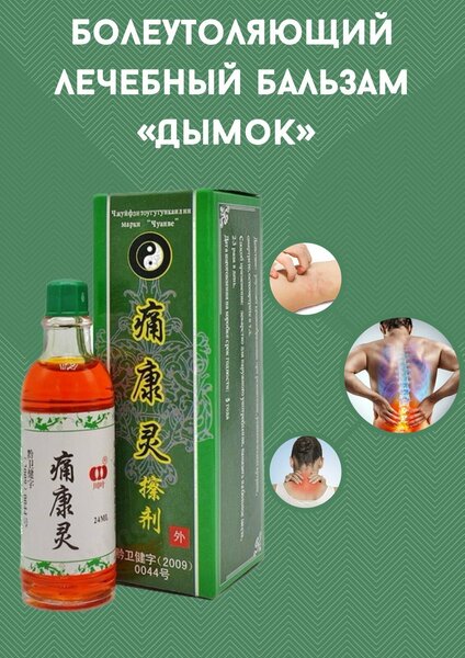 Жидкость для снятия боли Дымок Чуанье — это универсальное средство при болях в суставах, при ушибах, ревматизме, артрите, артрозе, отеках, растяжениях, защемлениях, а также при зуде и жжении после укусов комара и пчелы. Оказывает местное противовоспалительное, обезболивающее, заживляющее, разогревающее действие, стимулирует кровообращение. Это универсальное средство благодаря разнообразным формам выпуска – мазь, жидкость, растирка и обезболивающий пластырь. Эффективный бальзам от боли создан по древним китайским рецептам на натуральных травяных экстрактах и специальных лечебных вытяжках. Применяйте жидкость при защемлении нервов и как обезболивающее. Только для наружного применения: нанести на кожу на 2-3 минуты и после втирать в течение 5 минут. Средство безопасно для использования. Перед началом применения необходимо сделать тест-пробу на аллергическую реакцию, нанеся небольшое количество средства на ограниченный участок кожи в районе локтевого сустава. важно: Уважаемые клиенты. Упаковка может отличаться, в зависимости от поставки. На качество товара — это не влияет! Состав эвкалипта экстракт, черного перца экстракт, лавра экстракт, розмарина лекарственного эфирное масло, вытяжка из кобры, вытяжка из пауков, вытяжка черной змеи, вытяжка сколопендры, вытяжка пчелы, вытяжка скорпиона. Способ применения Перед началом применения необходимо сделать тест-пробу на аллергическую реакцию, нанеся небольшое количество средства на ограниченный участок кожи в районе локтевого сгиба. Небольшое количество бальзама нужно нанести на больное место и неторопливо втереть мягкими круговыми движениями, после чего поражённый участок рекомендуется тепло укутать на 2-3 часа. Процедура выполняется 1-3 раза в сутки, исходя из тяжести заболевания.