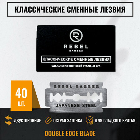 Классические сменные лезвия REBEL BARBER Double Edge Blade: качество и комфорт для каждого бритья Высококачественная сталь Лезвия REBEL BARBER Double Edge Blade выполнены из японской нержавеющей стали с платиновым нанесением, что обеспечивает их долговечность и надежность. Благодаря этому, вы сможете наслаждаться гладким и комфортным бритьем каждый раз. Подходят для любого типа кожи Лезвия REBEL BARBER Double Edge Blade подходят для любого типа кожи, обеспечивая гладкое и мягкое бритье. Они подходят как для домашнего использования, так и для бритья в барбершопе. Для раскрытия максимального потенциала Для раскрытия максимального потенциала лезвий REBEL BARBER Double Edge Blade, рекомендуется использовать их с высококачественными Т-образными станками REBEL BARBER. Это позволит вам наслаждаться гладким и комфортным бритьем каждый раз. Упаковка содержит 40 лезвий В упаковке содержится 40 лезвий, что позволяет вам всегда иметь запас на случай непредвиденных ситуаций. Выбирайте классические сменные лезвия REBEL BARBER Double Edge Blade для комфортного и гладкого бритья каждый день!