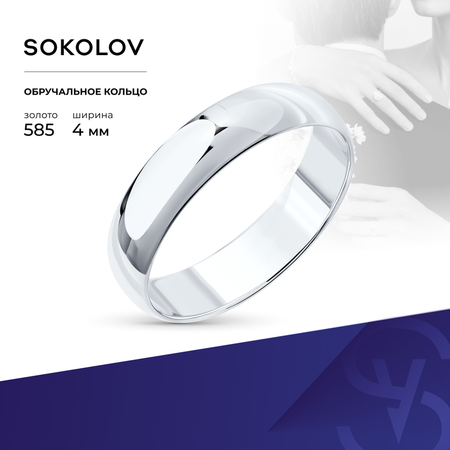 Обручальное кольцо из белого золота 585 пробы от бренда SOKOLOV - лучший выбор для тех, кто хочет сделать особенным свадебный день и стремится к совершенству, желая выразить свои чувства с помощью уникального и изысканного ювелирного изделия. Ширина кольца 4 мм, кольцо не бухтированное (без выемки с внутренней части). Предлагаем широкий ассортимент размеров изделий: маленьких и больших. Изысканное и яркое золотое кольцо создано известным ювелирным брендом, который славится своим качеством и элегантным дизайном. Уделяется внимание каждой детали производства: вы можете быть уверены в его прочности и долговечности. Изделие сохранит первозданную красоту на протяжении многих лет. Вы можете купить два изделия и получить парный комплект для женщины и мужчины на свадьбу. Сочетание простоты и минимализма придает украшению уникальный шарм, который подчеркнет индивидуальность и стиль. Тонкое и стильное исполнение добавит шарма и элегантности любому образу. Станет символом вашей любви и счастья, а также памятным украшением на всю жизнь. Прекрасный подарок на особый день или любой праздник. Универсальное: для мужского и женского стиля: непременно привлечет восхищенные взгляды окружающих. Великолепное сочетание минимализма и роскоши делает его универсальным аксессуаром, который подходит для любого наряда и события. Украшение легко сочетается с любыми другими ювелирными изделиями. Идеальный выбор для создания незабываемых моментов в жизни, как знак ваших отношений и любви. Кольцо из золота 585 пробы будет идеальным дополнением к вашему свадебному наряду и будет напоминать о счастливом дне каждый раз, когда вы на него смотрите. Подходит для тех, кто предпочитает простые и изысканные украшения. Сохранит блеск и красивый вид на протяжении многих лет. Очень легкое в уходе: можно просто протереть его тряпочкой из микрофибры. Благодаря своей форме идеально сидит на пальце во время носки, подчеркивая его красоту. Гладкая текстура и удобная посадка на палец обеспечивают комфортное ношение на протяжении всего дня. Отличный подарочный вариант золотых обручальных колец как для молодой пары, только вступающей в брак, так и для взрослой, которая хочет обновить свои брачные кольца. Минималистичный дизайн и сияющий блеск этого колечка станут настоящим сюрпризом для невесты. Подарите вашему партнеру что-то особенное, что он будет носить с гордостью и радостью на протяжении всей жизни. Вес товара в карточке является средним и может отличаться от веса аксессуара, который вы приобретаете в нашем магазине. Гарантия на брендовое ювелирное изделие составляет шесть месяцев со дня передачи товара потребителю. Произведено в России.