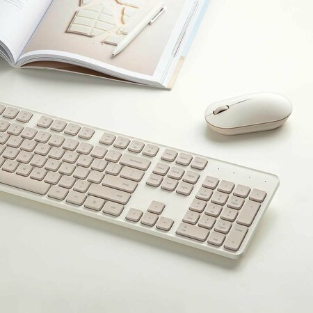 Xiaomi Mi Wireless Keyboard and Mouse Set 2 (WXJS02YM) White - набор, состоящий из беспроводной клавиатуры и мыши, который обеспечивает удобную работу за компьютером, стабильный сигнал и быструю передачу данных. Полноразмерная клавиатура состоит из 104 клавиш и разделена на три функциональные зоны: клавишную панель, цифровой блок и зону со стрелками и кнопками навигации. Расположение клавиш компактное, удобное и эргономичное. Клавиши обладают микродуговой поверхностью, удобной для нажатия. Ход клавиш составляет 2,8 мм. 4 независимых световых индикатора отображают рабочее состояние клавиатуры. Облегченный вес мыши в 45 г не создает излишнюю нагрузку на руку и запястье при длительной работе. Удобный изгиб и симметричная конструкция с центральным колесом подходит как для правой, так и для левой руки. Радиус беспроводной связи - 10м.