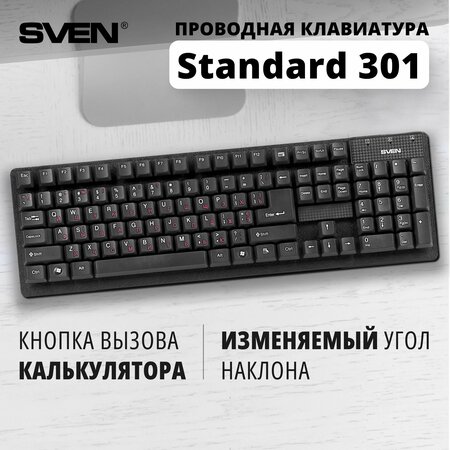 Клавиатура SVEN Standard 301 - это надежная и удобная клавиатура с классической раскладкой и клавишей быстрого доступа к калькулятору. Она оснащена влагозащищенным корпусом, что делает ее идеальной для любителей выпить кофе на работе. Клавиатура имеет тихий ход клавиш, что позволяет работать практически бесшумно. Клавиши имеют мягкую поверхность, что обеспечивает комфорт при использовании. Модель доступна в трех цветовых вариантах: черном, сером и белом. Клавиатура SVEN Standard 301 подключается к компьютеру через разъемы USB и PS/2. Она совместима со всеми операционными системами. Клавиатуру можно использовать как на домашнем компьютере, так и на офисном. Кроме того, клавиатура SVEN Standard 301 имеет подсветку клавиш, которая позволяет работать в темное время суток или в плохо освещенных помещениях. Подсветка имеет несколько режимов яркости, что позволяет настроить ее под свои потребности. Корпус клавиатуры выполнен из прочного матового пластика, который не царапается и не скользит в руках. Клавиатура легко очищается от пыли и грязи. SVEN Standard 301 также имеет цифровой блок, что делает клавиатуру удобной для работы с цифрами и расчетами. В целом, клавиатура SVEN Standard 301 – это надежный и удобный инструмент для работы и развлечений. Она сочетает в себе качество, функциональность и стильный дизайн.