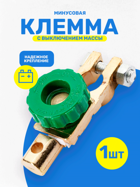 Клемма АКБ с выключателем массы (минусовая), изготовленная из качественного цинка — надежный и удобный аксессуар для управления электропитанием автомобиля. Благодаря встроенному выключателю массы вы легко можете разомкнуть цепь аккумулятора, что обеспечивает дополнительную безопасность при обслуживании и предотвращает разряд аккумулятора при длительном простое. Корпус клеммы выполнен из цинка, что гарантирует высокую коррозионную стойкость и долговечность изделия, а также отличную проводимость электрического тока. Конструкция позволяет быстро и надежно подключать провода с наконечниками диаметром до 6 мм, а затяжка производится с помощью стандартного гаечного ключа. Этот аксессуар подходит для большинства европейских аккумуляторов и обеспечивает удобство эксплуатации благодаря простому механизму включения и выключения массы. Клемма устойчива к перепадам температуры и выдерживает рабочее напряжение 12–24 В с силой тока до 125 А.