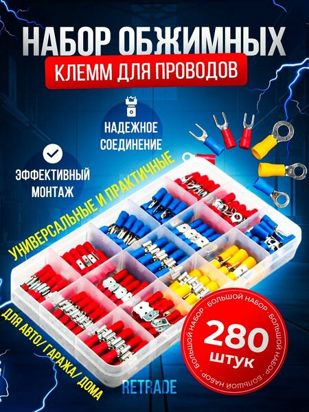 Комплект клемм для соединения проводов содержит 280 штук различных размеров, выполненных из высококачественной меди, что обеспечивает высокую износостойкость и защиту от коррозии. Благодаря разнообразию размеров клемм, можно соединять провода разного диаметра, что делает этот комплект универсальным и подходящим для различных задач. Клеммы выполнены в виде плоских листов, с отверстием для провода в центре, что обеспечивает простоту монтажа и удобство использования. Кроме того, клеммы имеют высокую степень надежности и безопасности, обеспечивая надежное соединение проводов, что исключает возможность их случайного разъединения. Разъемы также обладают силиконовой изоляцией, что обеспечивает дополнительную защиту проводов от повреждений. Эта изоляция также обеспечивает безопасность при использовании, так как защищает от случайного контакта с проводами. Так же можно использовать наши термоусадочные трубки. Клеммы упакованы в удобную пластиковую коробку, что обеспечивает их легкое хранение и транспортировку. Коробка имеет прозрачную крышку, что позволяет легко ориентироваться в её содержимом. Высокое качество и универсальность комплекта клемм обеспечивает его долговечность и эффективность в использовании. Для работы с ними вам нужны только обжимные клещи. Этот набор клемм является незаменимым инструментом для электромонтажных работ, а также может быть использован для соединения проводов в бытовых условиях. Он представляет собой полный комплект для соединения проводов любого типа и диаметра, обеспечивая надежность, безопасность и удобство использования.