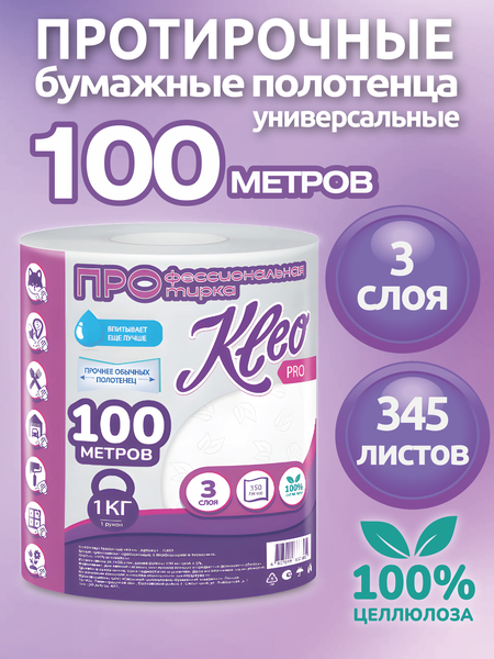 Новые полотенца KLEO - это не просто кухонные полотенца, а универсальный продукт для самых разных сфер применения – и это главное УТП этих полотенец. Полотенца сделаны из плотной влагопрочной основы, которая используется для протирочной бумаги в профессиональном сегменте. Но бренд Клео это потребительский сегмент, поэтому эти протирочные полотенца ориентированы в первую очередь для домашнего использования. Мы даем покупателю возможность пользоваться профессиональной протиркой прямо у себя дома, на даче, но и возможно в частном бизнесе: СТО, маникюр, салоны, клининг и т. д. Длина рулона - 100 метров. Трехслойная бумага из 100% целлюлозы. Перфорация и тиснение. 345 листов в рулоне.