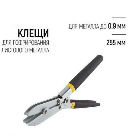 Клещи для гофрирования 52765 применяются для гофрирования заготовок из листового металла (в том числе из цветных металлов) толщиной до 0,9 мм. Основная область применения - гофрирование элементов металлической водосточной системы для их последующей стыковки между собой. Глубина сгиба - 35 мм. Материал: инструментальная сталь, ПВХ покрытие ручек. Упаковка: блистер.