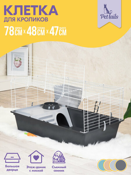 сенник в комплекте Недостатки:сложно защелкиваются крепёжки стенок Комментарий:сборка простая, кролик доволен, поставили еще лоток, но при этом осталось достаточно места для предвижения кроли, вход домика ей немного впритык, при залазании спиной приподнимает его, видно что он очень ей понравилось туда пролазить, но ради интереса в домик залезает на пару минут, морковница абсолютно бесполезная, в комплекте еще миска была, но мы ее пока убрали, потому что на домике есть встренная. В обычной советской стенке клетка занимает как раз всё пространсво под телевизор искали именно такие размеры, чтобы впихнуть её в это место. В такую клетку (если убрать домик) спокойно поместятся даже 2 декоратвных кролика