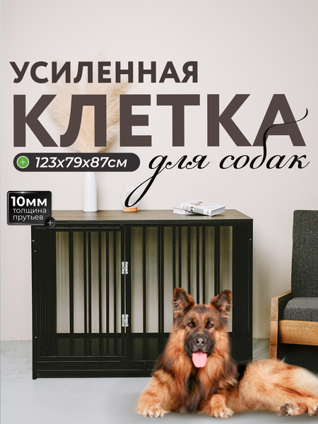 Антивандальная клетка для собак с усиленными прутами и удобным полипропиленовым поддоном может устанавливаться во дворе и внутри помещения. Металлическая конструкция подходит для комфортного содержания средних и крупных пород, так как размеры позволяют животным вставать внутри на все четыре лапы и вытягиваться во время сна. Сверху клетка защищена плотной столешницей. Такой домик уже не картонная конура, способная развалиться под воздействием давления сверху или вследствии слишком резвых игр питомца внутри. Зоотовары подобного премиум класса - настоящая интерьерная мебель в квартиру. Внутри клетки любимчик получает просторное жилище, создающее чувство защищенности и собственного места. Сверху на столешницу можно поставить вещи хозяев или сложить игрушки питомца. Большой антивандальный дом покупают всего один раз. Даже если четырехлапая любимица забеременеет, будет где разместить щенков и мать, и не придётся приобретать новую клетку. Полипропиленовый поддон не даст маленьким питомцам случайно застрять в прутьях или они не повредят лапы во время игр. Размеры черной усиленной клетки: 123х79х87 см. Конструкция сварного типа, изготовлена в России с учетом местного климата. На улице домик не ржавеет, можно поставить просто на лужайку возле дачи или загородного коттеджа. Товары бренда WikiZoo одобрены ведущими кинологами страны, поэтому создаются продумано с точки зрения зоопсихологии, ветеринарии и санитарных норм. Однодверная клетка с прочным замком, со скругленными прутьями и углами удобна для проживания собак и безопасна для эксплуатации владельцами. Убирать в клетке быстро и просто, металл не боится мытья дезинфекторами. Но не используйте средства, содержащие хлор: они опасны для целостности стали, здоровья питомца и его хозяина.
