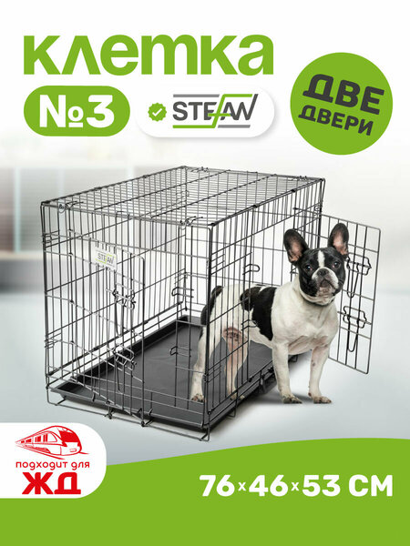 Металлическая клетка размер N 3 подходит для содержания и перевозки домашних животных (для собак мелких и средних пород, для кошек и для разных грызунов). Клетка оборудована двумя горизонтальными дверцами и пластиковым поддоном. Выдвижной поддон легко достать и при необходимости промыть моющими средствами. Параметры в собранном виде: 76х46х53см. Толщина прутьев 3-3,5мм Расстояние между прутьями 29мм В комплектации к клетке 2 дверцы ( 280хh365 мм), пластиковый поддон с бортом (бортиком). Железная клетка подойдет для содержания и транспортировки собак, для дома, автомобиля или выставки. Складная конструкция клетки обеспечит ее компактное хранение и простоту сборки. Подойдет также для котят, кошек и котов. Владельцы редких домашних животных также обратят внимание на данный товар, так как клетка подойдет для шиншилл и енота. Она также может быть использована для сирийского хорька, для джунгарских хомяков ( хомяка джунгарика), домашних мышей. Клетка будет как настоящий домик будка для любимых питомцев (не только собак и для щенков, но и кроликов и зайцев). Она может быть использована как ограждение (вольер) в квартиру или в дом. Или же как переноска в автомобиль или для выставки. Данный зоотовар – большая помощь владельцам питомцев. Так как клетка для собак в квартиру не представляет опасности для животных за счет того что ее решетка с полимерным покрытием. Все детали изделия закруглены, поэтому питомец не нанесет себе вред. Клетка оснащена надёжными замками типа щеколда с дополнительной фиксацией. Для избежания случайного открытия при транспортировке и защиты от вскрытия животным. Клетка для собаки или кота имеет привлекательный внешний вид, компактность и переносную конструкцию. Клетка может быть оформлена как большой, удобный и интересный домик для грызуна: для морских свинок, хорьков и крыс. В нее может быть отдельно докуплена миска, лоток, лежанка или гамак. Переноска кошачья ( собачья ) станет для вашего питомца собственным жильем, где он сможет проводить время в отсутствиехозяина.