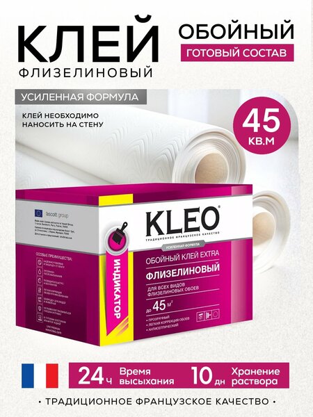 Клей для обоев KLEO EXTRA на 45 кв. м с индикатором, обойный клей для виниловых, бумажных, флизелиновых обоев на основе малярного флизелина, сыпучий 330 гр