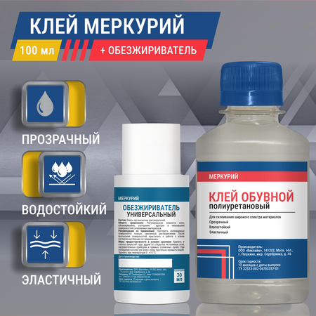 Профессиональный полиуретановый клей Меркурий предназначен для склеивания широкого спектра материалов, таких как натуральная кожа, кожзам, экокожа, замша, нубук. Применяется в производстве обуви, а также в мастерских по ремонту ботинок, сапог, кроссовок, в том числе подошвы из полиуретана, ТЭП (термоэластопласт), ПВХ, каблуков, кожаной одежды и различных изделий из натуральных и искусственных тканей, ремонта небольших трещин. Влагостойкий клеевой шов обеспечивает прочное и непромокаемое соединение, которое позволяет восстановить водонепроницаемые свойства изделий. Морозостойкие свойства делают его надежным выбором для ремонта в том числе зимней обуви. Кроме того, универсальный клей Меркурий обладает сильной адгезией к поролону, войлоку, текстилю, винилу, дереву и его производным (фанера, ДСП, ДВП), металлу, керамике, фарфору, камню, картону, бумаге и многим другим материалов. Прозрачная формула позволяет использовать его для стекла, зеркал и различных прозрачных поверхностей, обеспечивая чистый и невидимый результат. Для текстильных изделий клей предлагает возможность склеивания без следов, что делает его незаменимым помощником для создания различных поделок, рукоделия, хобби и творчества. Эластичный шов позволяет использовать клей для ремонта мебели, перетяжки салона автомобиля, а также в ремонте надувных матрасов, бассейнов и лодок. Клеи можно применять для фиксации различных напольных покрытий, таких как ковры, ковролин, ламинат, линолеум, в том числе фиксации стыков и швов, для полимерных стеновых панелей и для керамической плитки. Пожалуйста, следуйте нашим инструкциям для достижения лучшего результата склеивания.