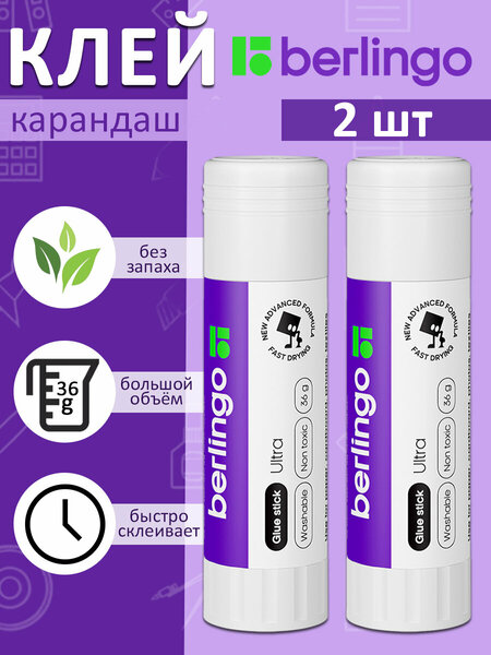 В комплекте 2 клея-карандаша по 36 грамм. Клей склеивает изделия из бумаги, картона, ткани, фотографии. Экономичен в использовании. Не токсичен, не содержит растворителей. Надежный колпачок предохраняет от высыхания.