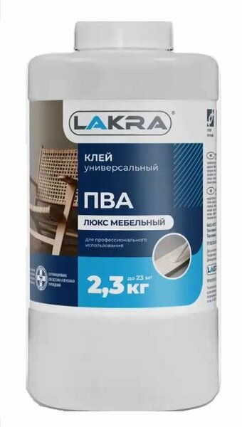 Клей ПВА «люкс» мебельный Высококачественный клей на основе водной дисперсии ПВА. Обладает высокой прочностью склеивания и оптимальным временем схватывания. После высыхания образует эластичную прозрачную пленку. Характеристики Назначение Предназначен для профессионального применения в деревообрабатывающей и полиграфической промышленности, а также для ответственных видов работ в быту, в которых предъявляются высокие требования к прочности склейки. Рекомендуется для работ, где шов склеивания подвергается большим динамическим нагрузкам. Подходит для склеивания всех пород дерева, переплетных работ. Применяется при сборке и ремонте мебели, приклеивании шпона. Примерный расход 0,1 кг/м? Фасовка 0,9 кг, 2,3 кг, 40 кг Срок годности 2 года со дня изготовления, в оригинальной плотно закрытой таре Сухой остаток Не менее 40% Время высыхания 24 ч