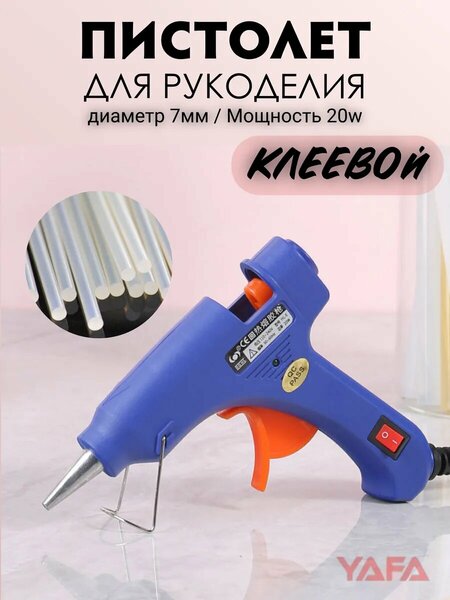 Клеевой пистолет 20 Вт для стержней с диаметром 7 мм и длинной 270 мм отлично подходит для рукоделия, творчества и мелкого ремонта. Термопистолет удобен в применении и имеет кнопку включения/выключения, что создает удобные условия для работы. Клеящий термопистолет термоклеевой пистолет удобен для склеивания различных деталей и поверхностей, а также для создания поделок, рукоделия и творчества. Клей пистолет термо отлично зарекомендовал себя для поделок, как для индивидуального использования, так и в тематических кружках. Также, вы можете приобрести у нас отдельно клеевые стержни для горячего клеевого пистолета. Клей подходит для соединения широкого спектра материалов таких как дерево, пластик, металл, стекло, картон, керамика, линолеум, кожа, синтетические изделия и т. п. Клеевой термопистолет это незаменимая вещь как для домашнего использования, так для профессионального и даже для школьников старших классов (использовать под присмотром взрослых). У нас в продаже представлены комплекты клеевых стержней с диаметром 7 мм и длиной 27 см: 10 шт, 25 шт, 50 шт, 60 шт, 100 шт. и 1 кг.
