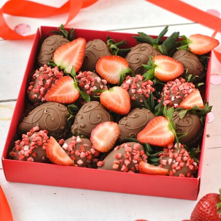 Набор из клубники в бельгийском молочном шоколаде с добавлением сублимированной клубники Очень классный, популярный и вкусный подарок для любимой девушки, жены, мамы, бабушки, доченьки или сестрёнки, подружке, коллеге на работе или возлюбленной. Такой подарок никого не оставит равнодушным! Данный набор отлично подойдёт в качестве подарка на любой праздник или побаловать своих любимых и близких ❤ Рекомендуем употребить продукцию, содержащую ягоды, в течение первых 12 часов после покупки