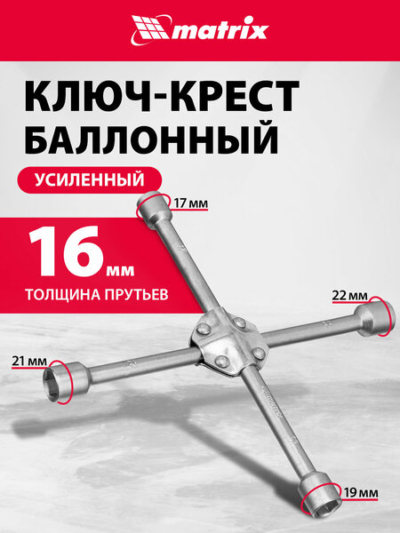Ключ-крест баллонный Matrix 17 х 19 х 21 х 22 мм, усиленный 14244