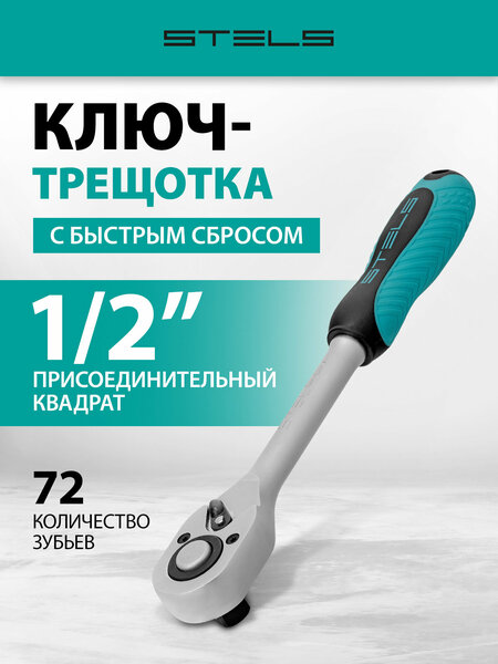 Ключ-трещотка Stels 14043 из стали CrV, с присоединительным квадратом 1/2", 72 зубцами и быстрым сбросом, предназначен для работы с резьбовым крепежом. Совместим с торцевыми головками различных размеров, а также адаптерами и удлинителями. Инструмент работает мягко и плавно благодаря 72-зубому храповому механизму. Шаг трещотки составляет 5°, что облегчает работу в ограниченном пространстве. Инструмент будет полезен в сервисном центре, авторемонтной мастерской, а также пригодится дома, в гараже или на даче.
