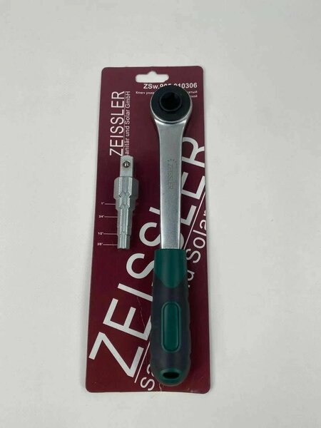 Ключ универсальный ступенчатый с трещеткой Zeissler (арт. ZSw.905.010306) для монтажа/демонтажа радиаторных ниппелей и коротких крановых удлинителей. Выполнен из хромованадиевой стали, закаленный, никелированный, четырехгранник для установки в трещотку. Применяется для внутренних шестигранных, двенадцатигранных, кулачковых гнезд, размерами 3/8"-1/2"-3/4"-1". Конструкция ступенчатого ключа обеспечивает соединение без перекашивания ниппелей и резьбовых соединений. Переставляемая трещотка 1/2" обеспечивает быстрый и легкий монтаж/демонтаж фитингов (для откручивания и закручивания). Удобная эргономическая прорезиненная ручка. Долговечный срок эксплуатации. Ключ универсальный ступенчатый для американок с размерами 3/8" -7/16"- 1/2" - 5/8" - 1" - 13/16" с трещоточной рукояткой. Головку ключа можно вставлять с разных сторон (для откручивания и закручивания).