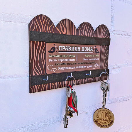 Настенная ключница в виде Домика "Семья всегда на первом месте" – это не просто функциональный предмет интерьера, но и оригинальный подарок для близких. Выполненная из дерева, она гарантирует долговечность и экологичность, а также придает уют и теплоту вашему дому. А металлические крючкхорошо держат вес. Ключница имеет размеры 14х14 см и глубину всего 3 см, что позволяет разместить ее даже в небольшом пространстве, не занимая много места. В комплекте идут три металлических крючка, что обеспечивает быстрый и удобный доступ к ключам, а также предотвращает их потерю. Особенностью данной модели является коллаж "Семья всегда на первом месте", который подчеркивает важность семейных ценностей и традиций. Это делает ключницу не только удобным местом для хранения ключей, но и символом семейного уюта и тепла. Выбирая настенную ключницу в виде Домика "Семья всегда на первом месте", вы получаете не только удобное и практичное решение для хранения ключей, но и стильный элемент декора, который подчеркнет ваш вкус и индивидуальность.