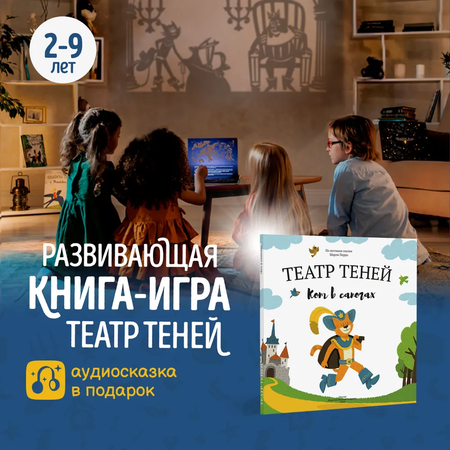 Книга для детей SHADOW PLAY "Кот в сапогах", в наборе аудиосказка, кукольный театр