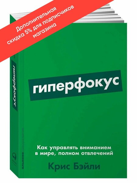 Вы заходите в комнату и вдруг понимаете, что напрочь забыли, зачем сюда направлялись? Принимая душ, ловите себя на мысли, что проблема, мучившая несколько дней, решается довольно просто? Смартфон стал черной дырой, поглощающей ваше время? Автор бестселлера «Мой продуктивный год» Крис Бэйли в своей новой книге рассказывает, как управлять самым важным ресурсом XXI века — вниманием. Он изучил множество статей, пообщался с известными исследователями внимания, провел собственные эксперименты и отобрал самые эффективные техники. С их помощью вы сможете достичь состояния максимальной продуктивности — гиперфокуса, а также научитесь использовать режим расфокусировки, который подзаряжает энергией и помогает стать креативнее. Благодаря этой книге вы будете лучше концентрироваться на важных задачах, реже чувствовать себя перегруженным и уделять близким не только больше времени, но и больше внимания.