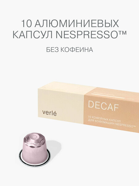 кофе молотый в капсулах Verle DECAF CAPSULES 10 шт. представляет собой высококачественный продукт от петербургского обжарщика verle, который зарекомендовал себя на рынке кофе питкий фруктовый кофе средней обжарки без кофеина с нотами чернослива и красных яблок, гладким телом и средним по продолжительности послевкусием упаковка кофе состоит из 10 алюминиевых капсул формата Nespresso™, что позволяет приготовить 10 порций кофе. Verle DECAF CAPSULES 10 шт. не содержит ароматизаторов и вкусовых добавок, что делает его безопасным для здоровья и экологически чистым продуктом кислотность — 4, крепость — 4 упаковка — 10 капсул состав: Гватемала декаф (мытая обработка) - 100% дескрипторы: чернослив, яблоко, черный чай