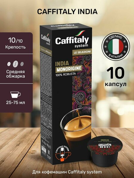 Капсулы для кофемашины Caffitaly India Kaapi Royale предлагают уникальный кофейный опыт, используя 100% индийскую робусту с плоскогорья штата Карнатака. Этот сорт кофе отличается интенсивным ароматом и терпким вкусом с нотками шоколада и специй, что придаёт ему уникальность и неповторимость. Моносорт кофе из линейки Caffitaly SUPER PREMIUM, который воплощает в себе традиции индийского кофейного мастерства и итальянского качества.