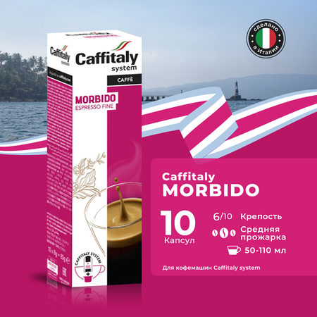 Тщательный отбор лучших сортов арабики из Бразилии и Гватемалы и индийской робусты придает этому бленду гармоничный и округлый вкус. Соотношение 70% арабики к 30% робусты в сочетании с североитальянской обжаркой формируют вкус с фруктовыми нотками. Сорт Morbido превосходно раскрывается на порции эспрессо. Подходит этот сорт и в качестве основы для капучино и других рецептов кофе. Интенсивность вкуса: 6/10 Крепость: 3/5 Количество порций: 10 Вес кофе в одной капсуле: 8 гр