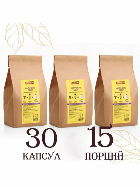 Кофе в капсулах Gambini Капучино Лайт, обезжиренное без сахара(Cappuccino)-это непревзойденное сбалансированное сочетания премиального натурального кофе и воздушной пенки из горячего обезжиренного молока. Данный капучино подойдет людям, ведущим здоровый образ жизни, т. к. не содержит сахара, а обезжиренное молоко содержит минимум калорий и жиров. Упаковка состоит из 30 каспул, из которых 15 капсул с молоком без сахара, и 15 капсул с натуральным кофе. Таким образом вы получите 15 порций отличного капучино объемом 240мл. Черная капсула-это капсула для кофемашины Дольче Густо с натуральным черным кофе, прекрасный бленд арабики из Бразилии и Колумбии (80%) , в сочетании с Вьетнамской робустой (20%), предназначена для пролива 40мл. Белая капсула-капсула для кофемашины Nescafe Dolce Gusto с премиальным обезжиренным молоком без сахара, сахар можете добавить самостоятельно по вкусу, предназначена для пролива 200мл. Качество и вкус напитка капсульного кофе зависит не только от качества самого зерна. Важно создать правильный купаж из разных сортов кофе арабики и робусты, придать каждому из них свою степень обжарки. Еще одна важная составляющая- это помол. Только в совокупности всех этих факторов свежеобжаренный молотый кофе в капсулах будет идеальным по проливу и экстракции самого кофе. Именно поэтому специалисты нашей компанию проходили обучение и стажировку у признанных итальянских кофейных специалистов. Все вкусы и прочие нюансы также были тщательно проработаны совместно с гуру из Италии. Кофе в капсулах для кофеварки обладает сбалансированным вкусом и нежно хранит все вкусовые оттенки и аромат кофе для того, чтобы вы ежедневно могли наслаждаться своим любимым напитком. Наш капсульный продукт из разных стран мира поможет перенестись мысленно в свою кофейню к любимому баристе, приготовив чашку кофе на свой вкус-ароматный черный кофе американо, пробуждающий кофе эспрессо(espresso), воздушный кофе с молоком или сливками капучино, интенсивный кофе ристретто, бархатистый лунго, вкусный кофе с молоком латте. Капсулы для кофемашины-это очень удобный порционный вид кофе, который благодаря большому давлению в кофемашине, всегда обеспечит ваш напиток устойчивой плотной пенкой, или как ее называют итальянцы-крема (crema). Благодаря удобству и малым габаритам очень часто капсульные кофемашины дарят друг другу в подарок на всевозможные праздники. Состав: кофе натуральный жареный молотый в капсулах, молоко. Обжарка-средняя, помол-средний. Для приготовления правильного напитка используйте рекомендации, указанные на упаковке!