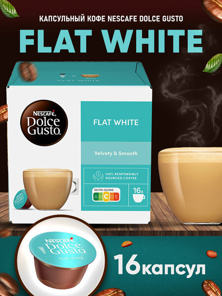 Откройте для себя нежный Флэт Уайт от NESCAFE Dolce Gusto. Легендарный кремовый кофе с бархатистой пенкой и нежным сливочным вкусом, вдохновленный творениями бариста из Австралии и Новой Зеландии. Флэт Уайт (англ. Flat white, «плоский белый») — кофейный напиток на основе двойного эспрессо с добавлением молока, созданный в 1980-х годах. Неповторимое сочетание насыщенного эспрессо и нежного молока раскроет кремовые ноты карамели и покорит вас с первого глотка. Кофе Flat White получил свое название из-за особой однородной бархатистой текстуры, сочетающей в себе деликатно вспененное молоко и двойную порцию эспрессо. Кофе капсулы Dolce Gusto для кофемашины капсульной c ярким, нежным молочным вкусом и великолепной мягкой пенкой позволяют создать множество изысканных напитков, в каждом глотке которых непременно раскрываются качество и стиль. Каждая чашка кофе в капсулах нескафе дольче густо прекрасно бодрит по утрам и помогает оставаться бодрым на протяжении всего дня, особенно, если добавить вкусняшки или какой-нибудь вкусный набор. В каждой коробке по 12 / 16 / 30 штук! Натуральный на 100% премиум живой кофе изготовлен из смеси оригинальных кофейных зерен Арабики и Робусты средней обжарки, без горечи. Капсула обладает сбалансированным, мягким и нежным вкусом, бережно хранит все оттенки вкуса и аромата для того, что бы вы ежедневно могли наслаждаться каждой чашкой любимого напитка. Будь то ароматный американо и пробуждающий эспрессо, воздушный капучино и интенсивный ристретто, бархатистый лунго и восхитительный латте или холодный кофе: вкус каждого глотка перенесет Вас в любимую кофейню. Благодаря инновационным технологиям и продуманной разработке капсулы автоматически регулируют поступающее в них давление. Неважно, требуется ли высокое давление для порции или же деликатное воздействие для воздушного молока в макиато, каждый напиток NESCAFE Dolce Gusto получается именно таким, каким он и должен быть - идеальным и гармоничным! Крышечка и донышко капсул выполнены из тонкой алюминиевой фольги, что обеспечивает легкое прокалывание, продлевая срок службы вашей кофемашинки. Пищевая ценность: на 100 г сухого продукта Энергетическая ценность: 1780кДж/425ккал Жиры: 19,7г - в том числе насыщенные жирные кислоты: 12,0г Углеводы: 36,8г - в том числе сахара: 33,3г Пищевые волокна: 4,3г Белки: 19,7г Расчетное количество соли: 0,83г на 100 мл Энергетическая ценность: 117кДж/28ккал Жиры: 1,3г - в том числе насыщенные жирные кислоты: 0,8г Углеводы: 2,4г - в том числе сахара: 2,2г Пищевые волокна: 0,3г Белки: 1,3г Расчетное количество соли: 0,05г на 180 мл | % суточной потребности * Энергетическая ценность: 208кДж/50ккал | 2% Жиры: 2,3г | 3% - в том числе насыщенные жирные кислоты: 1,4г | 7% Углеводы: 4,3г | 2% - в том числе сахара: 3,9г | 4% Пищевые волокна: 0,5г | - Белки: 2,3г | 5% Расчетное количество соли: 0,10г | 2% * Процент суточной потребности в нутриенте в соответствии с нормами Регламента Европейского парламента и Совета Европейского Союза 1169/2011 от 25.10.2011 г.