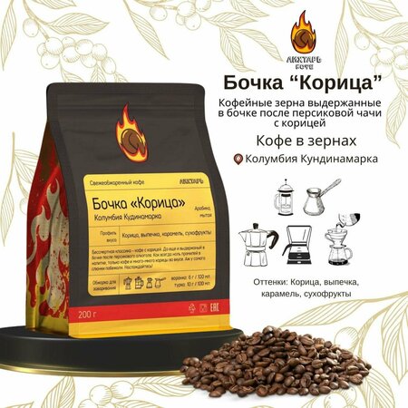 Кофе в зернах "Бочка Корица" из Колумбии — это отличный выбор для настоящих ценителей ароматного и бодрящего кофе. Уникальная особенность этого продукта заключается в его выдержке в бочке после персикового алкоголя, что придаёт ему неповторимый вкус и насыщенный аромат. Этот натуральный кофе идеально подходит как для турки, так и для кофемашины, позволяя насладиться им в любом формате. Каждый глоток "Бочки Корица" превращается в настоящий утренний ритуал. Его сладковатый вкус с оттенками ореха и карамели станет настоящим открытием для любителей кофейных наслаждений. 200-граммовый пакет обеспечивает достаточно зерен, чтобы порадовать себя и близких ароматным напитком в любой момент дня. Кофе "Бочка Корица" способен подарить вам заряд бодрости и хорошего настроения благодаря своему уникальному химическому составу. Каждый зерно собранное в Колумбии, отличается высоким качеством и прекрасно подходит для создания насыщенного, вдохновляющего напитка. Этот кофе станет отличным спутником в утренней рутине и отлично подойдет для расслабляющего вечера. Поэтому, если вы ищете кофе с характерным вкусом и ароматом, попробуйте "Бочку Корица" и насладитесь его особым воздействием на ваши чувства.