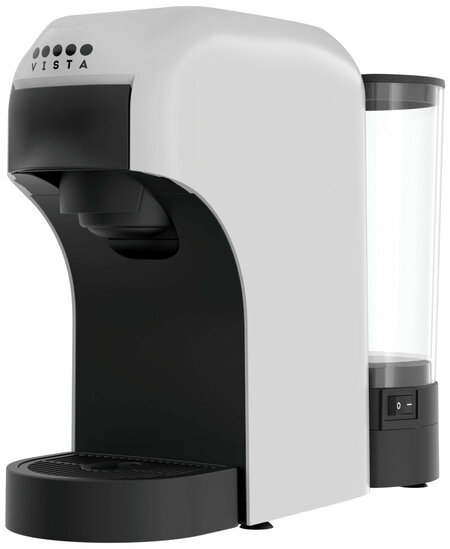 Кофемашина капсульного типа Vista Trifony 3 в 1 DNS300. Предназначена для капсул системы Nespresso, Dolce Gusto и для молотого кофе (комплект включает сразу все 3 адаптера - покупать отдельно их не нужно). Быстрый старт: кофемашина нагревается за 50 секунд и помогает с легкостью приготовить кофе в одно нажатие. Кофе как в кофейне: можно приготовить эспрессо, лунго, американо, а также латте или капучино (при использовании капучинатора, который продается отдельно). Помпа высокого давления 19 бар (производитель Италия) позволяет делать вкусный кофе с плотной кофейной пенкой. Ручной выбор объёма порции: от 20 до 140 мл. Емкость резервуара для воды: 850 мл, хватит на 5-10 чашек кофе. Компактный размер: 136х335х283 мм позволит разместить кофемашину в любом месте: и дома, и в офисе и даже взять ее с собой в путешествие по России. Автовыключение: через 9 минут бездействия для экономии электроэнергии. Простота в уходе: резервуар для сбора капель, адаптеры для капсул и отсек для воды съёмные. Их легко помыть, высушить и поставить обратно. Комплект: кофемашина, 3 адаптера, темпер-мерная ложечка для молотого кофе, инструкция, гарантийный талон.