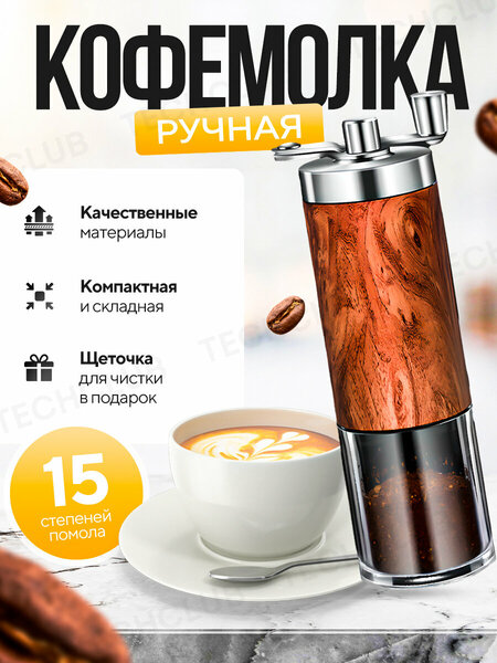 Ручная кофемолка - новинка от TechClub. Корпус мельницы для кофе изготовлен из пластика с имитацией под дерево. Острые конические жернова изготовлены из керамики - они не выделяют токсичного запаха и способны обеспечить точный помол кофейного зерна, а также долговечны в использовании. Ручка из металла. Размер помола можно настроить в зависимости от необходимого размера, это может быть очень мелкая или крупная фракция. Перед работой просто отрегулируйте необходимый помол. Кофемолка надежно упакована в коробку и не пострадает при транспортировке. Ручная кофемолка может стать хорошим и нужным подарком любителю кофе. Кофемолка механическая полностью разбирается, это упрощает уход за ней и делает её ремонтопригодной. Кофемолка ручная компактна, ее можно брать с собой на природу, дачу и варить свой любимый кофе. Кофемолку можно также использовать для измельчения иных видов зерен: орехов, злаков, специй (однако, не рекомендуется производителем). Ручная кофемолка – это идеальное решение для любителей качественного и ароматного кофе. Это простое и доступное устройство, которое позволяет приготовить настоящее кофе из молотого зерна. Основным преимуществом ручной кофемолки является возможность регулировать степень помола зерна. Это позволяет получить оптимальное количество вкуса и аромата из каждой порции кофе. Ручная кофемолка легка в управлении и проста в использовании, так что даже начинающий бариста может легко приготовить вкусный и свежий кофе. Кроме того, можно использовать разные типы кофейных зерен, что дает больше возможностей для экспериментов с вкусом и ароматом.