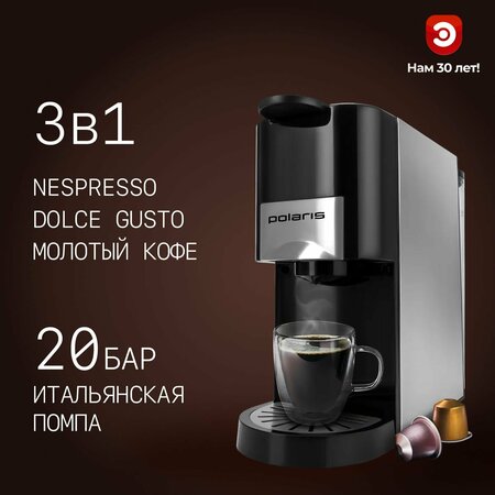 Приготовьте вкусный кофе, не выходя из дома, вместе с капсульной кофеваркой POLARIS PCM 2020 3-in-1. Она станет незаменимой вещью на вашей кухне и справится с любыми задачами. Данная модель имеет давление 20 Бар, мощность 1450 Вт и резервуар для воды объемом 0.8 л. Универсальный черный цвет и стильный дизайн отлично дополнят любой интерьер на вашей кухне. А за длительный срок службы капсульной кофеварки POLARIS PCM 2020 3-in-1 без поломок отвечают современные технологии, высококачественные материалы и профессиональная сборка. Чтобы очистить кофеварку, потребуется обычное моющее средство и несколько минут вашего времени.