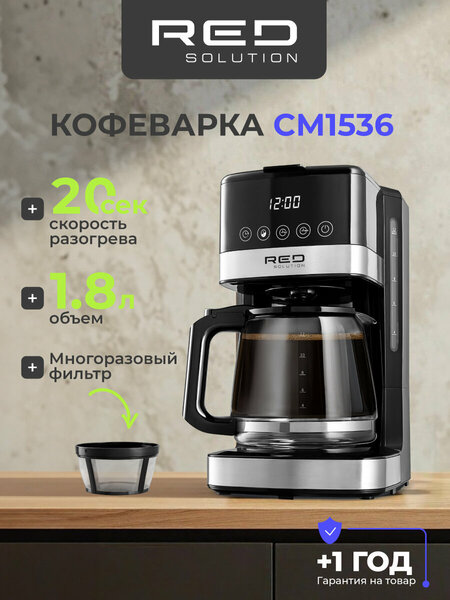 Кофеварка RED SOLUTION CM1536 - это устройство, которое поможет вам быстро и легко приготовить ароматный кофе. Мощность устройства составляет 950 Вт, что обеспечивает быстрое приготовление кофе. Вместительный кувшин на 1,8 литра позволяет приготовить до 12 чашек напитка всего за 9 минут. Кофеварка оснащена функцией автоподогрева, которая поддерживает температуру напитка, что позволяет наслаждаться кофе дольше. Функция "Антикапля" предотвращает проливание кофе на стол, а сенсорное управление делает использование кофеварки простым и безопасным. Дополнительные функции включают блокировку включения без воды и автоотключение после приготовления напитка. Корпус кофеварки выполнен из прочного пластика и металла, что гарантирует долгий срок службы устройства. Кувшин изготовлен из стекла, что придает кофеварке элегантный вид. Кофеварка RED SOLUTION CM1536 оснащена дисплеем, таймером с часами и отложенным стартом, что делает ее удобной в использовании. Длина шнура питания составляет 0,9 метра, что позволяет разместить кофеварку в любом удобном месте. Выбирая кофеварку RED SOLUTION CM1536, вы получаете надежного помощника для приготовления ароматного кофе, который будет радовать вас каждый день.