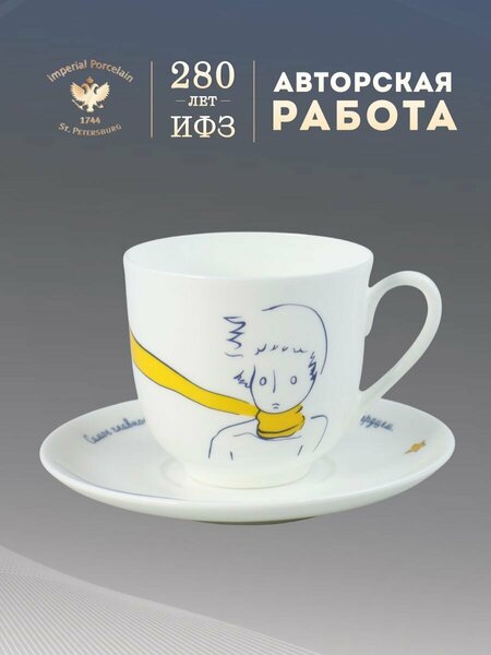 • Кофейная пара из костяного фарфора , форма Ландыш рисунок "Портрет Маленького Принца". Автор формы по музейному образу, автор рисунка Антуан де Сент-Экзюпери. •Размеры: чашка (объем 165 мл, высота 6.5 см, длина 9 см, ширина 7 см), блюдце (высота 2 см, диаметр 12 см) • Императорский фарфоровый завод – старейшее фарфоровое предприятие в мире и крупнейший отечественный производитель фарфора. С 1744 года предприятие творит фарфоровую историю России, создавая в фарфоре – таком хрупком, но таком вечном – летопись важнейших событий из жизни нашей страны. • Императорский фарфоровый завод расширяет состав полюбившейся ценителям фарфора коллекции «Маленький принц». На фарфоровых чашках и бокалах оживают иллюстрации Антуана де Сент-Экзюпери, ставшие неотъемлемой частью произведения. Уникальные авторские рисунки, опубликованные в первом издании произведения 1943 г, стали своего рода lingua franca – объединяющим языком для представителей всех стран. Костяной фарфор, из которого выполнены предметы коллекции, как нельзя лучше отвечает теплому лирическому настроению произведения. • Элегантная кофейная пара из фарфора – это не просто посуда, а элемент утончённой сервировки, который делает каждое кофепитие особенным. Классическая чашка с блюдцем фарфоровая подчеркнёт вкус напитка, а её лёгкость и изящество создадут атмосферу уюта и эстетики. Кофейная пара изысканного дизайна добавит элегантности в любую сервировку. Благодаря особой технологии изготовления фарфор тонкий, но при этом прочный и долговечный. Изящная кофейная чашка с тонким ободком делает процесс наслаждения напитком ещё приятнее. Изысканные чашки для кофе помогут создать атмосферу утреннего уюта и наслаждения ароматным напитком. Красивая кружка фарфоровая идеально подойдёт для любителей кофе, чая и других горячих напитков. • Это отличный вариант подарка мужчине на 23 февраля, стильный и практичный вариант для настоящих защитников. • Обратите внимание, Императорский фарфоровый завод выпускает изделия согласно требованиям ГОСТ, допускающим наличие наколов, черных точек и вкраплений до 1 мм на изделиях, в т. ч. на лицевой стороне. Это не является браком. Данное изделие не рекомендуется использовать в посудомоечной машине, чтобы сохранить первоначальный вид, мы рекомендуем мыть изделие вручную. Использование в микроволновой печи недопустимо.
