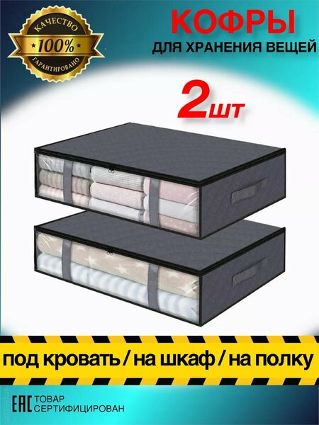 Кофр органайзер для хранения вещей под кроватью, в шкафу, на антрисоли. Бескаркасный размер короба - 60х45х15 см, компактный в сложенном виде. Удобный, вместительный и большой кофр мешок для хранения вещей с двойной застежкой-молнией, усиленными ручками для переноски, с прозрачной вставкой. Кофр для хранения вещей в шкафу подойдет для хранения постельного белья, одеял, пледов, покрывал, полотенец, детских вещей, игрушек, сезонной и повседневной одежды, курток, полотенец, нижнего белья, обуви и разных мелочей. Короб для хранения на молнии может использоваться для организации системы хранения в шкафу, с такими мешками для хранения легко поддерживать порядок в доме. Ваши вещи будут защищены от пыли, влажности и моли, а также будут аккуратно сложены в шкафу, не занимая много места. Мешок для вещей найдет достойное место в вашем быту. Толстое нетканое полотно произведено из 3-х слойного высококачественного материала толщиной 130г/кв. м, не имеет запаха, устойчив к разрывам. Кофр для хранения вещей закрывается крышкой с прочной двойной молнией с металлическим бегунком. Мешок для хранения вещей универсален, его можно использовать как мешок для обуви, корзина для игрушек, чехол для вещей. Усиленная ручка позволяет переносить большое количество вещей, прозрачное окно позволяет видеть содержание кофра. Ручки для переноски усилены утолщенной тканью и стеганым швом, что удваивает несущую способность и прочность. Кофр для вещей удобно двигать из-под кровати, полки, шкафа или вокруг. Сумки для хранения сохранят вашу одежду свежей и чистой. Такие вместительные мешки для хранения вещей подойдут для гардероба, прихожей, спальни, детской, для всех шкафов, для хранения под кроватью, на антресоли. Короб для хранения вещей в шкафу легко складывается, когда нет необходимости в его использовании.
